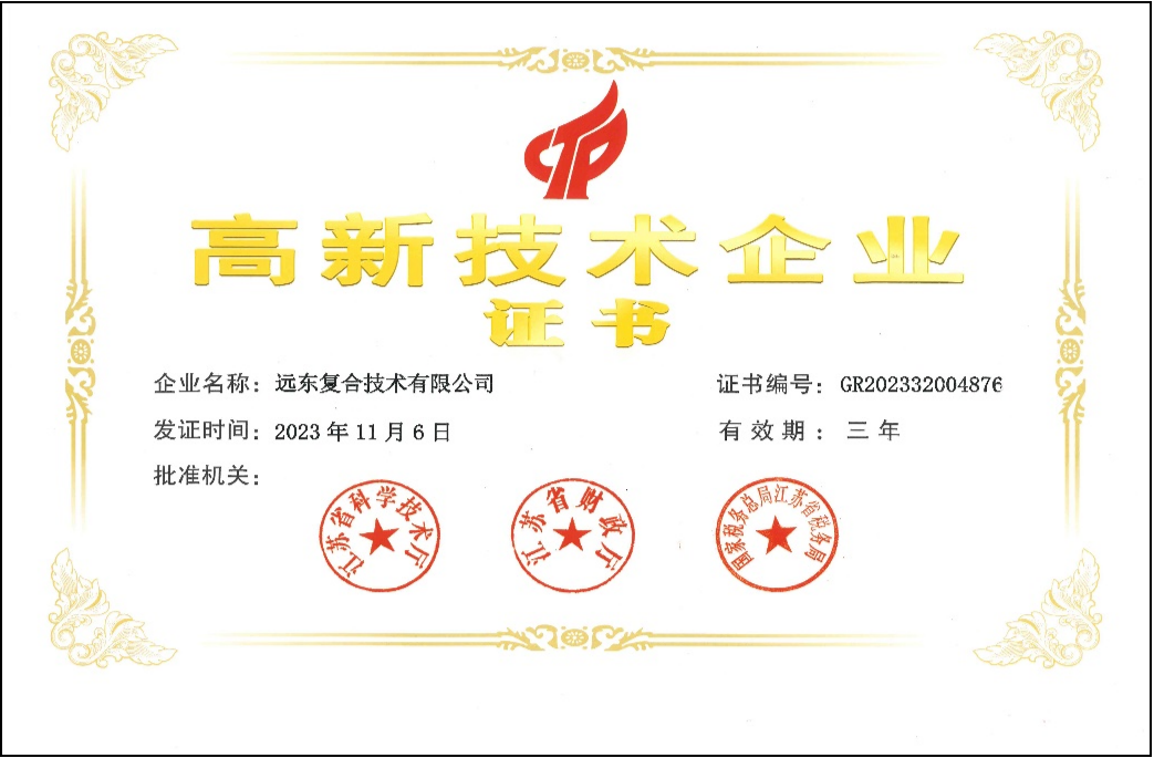 日前,遠東智慧能源股份有限公司(簡稱:遠東股份 股票代碼:600869)全資子公司遠東復合技術有限公司(簡稱:遠東復合技術)通過了高新技術企業資格認定。